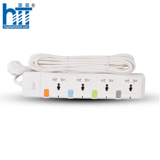 - Thiết kế 4 lỗ cắm 3 chấu tiêu chuẩn phù hợp với mọi loại phích cắm có trên thị trường sẽ giúp bạn cung cấp điện cho nhiều thiết bị cùng lúc như đèn bàn, quạt máy... một cách tiện lợi.